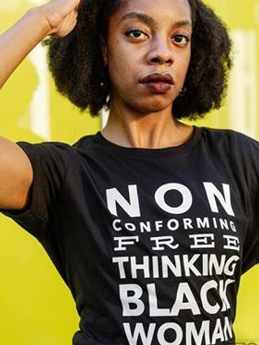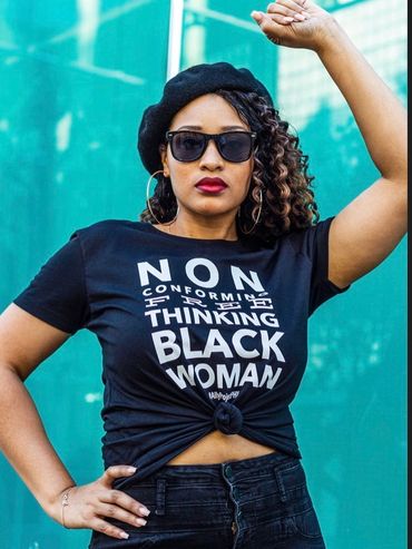 A Non Conforming Free Thinking Black Woman is someone who defies societal expectations and norms by embracing her own individuality. She is guided by her own values, beliefs, and desires, rather than adhering to traditional roles or stereotypes. This woman is resilient, confident, and unapologetically authentic, pursuing her passions and goals with determination.